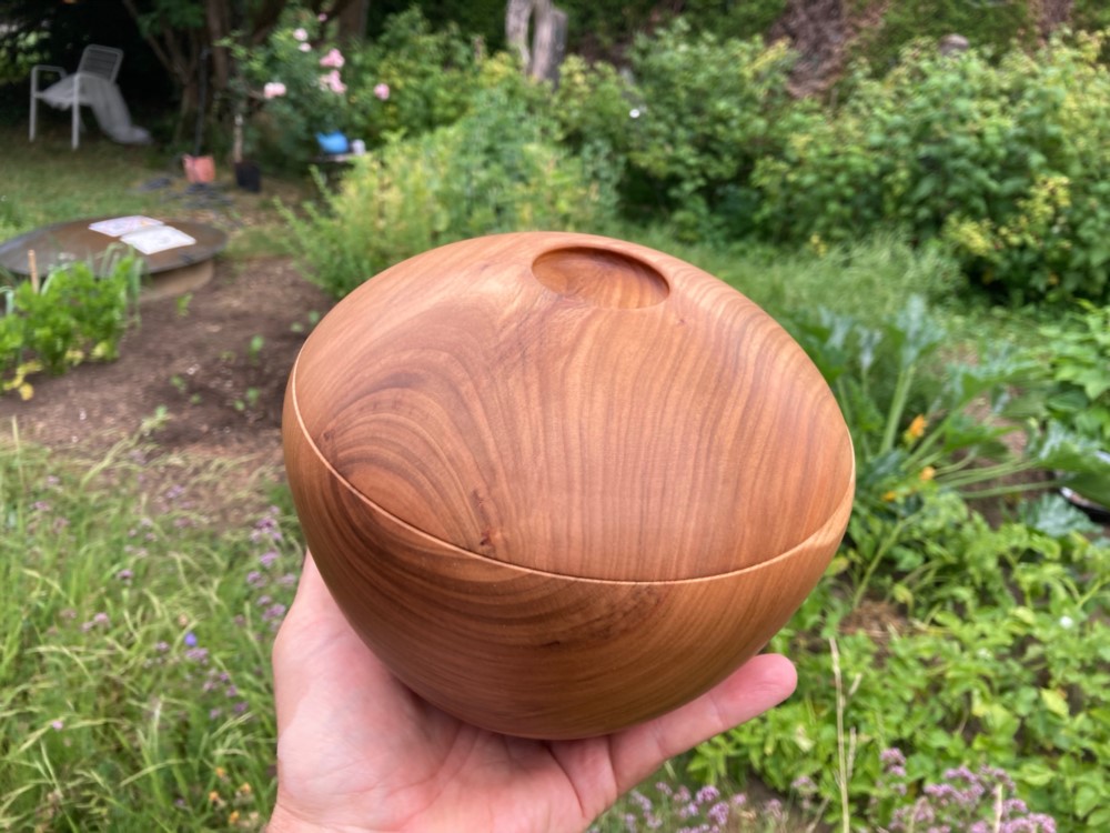 Wenn – nach einigen Wochen bis zu mehreren Jahren – die Rohlinge getrocknet sind, dann kann man aus ihnen formschöne Objekte kreieren, die sich nicht mehr verziehen und tatsächlich kreisrund bleiben.