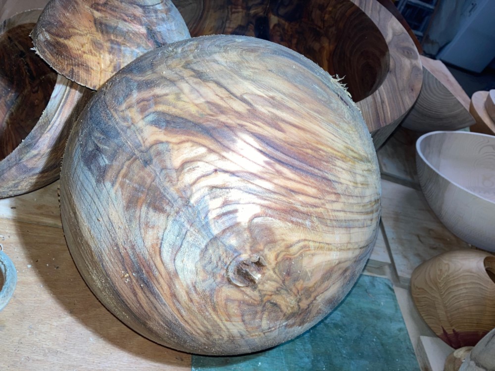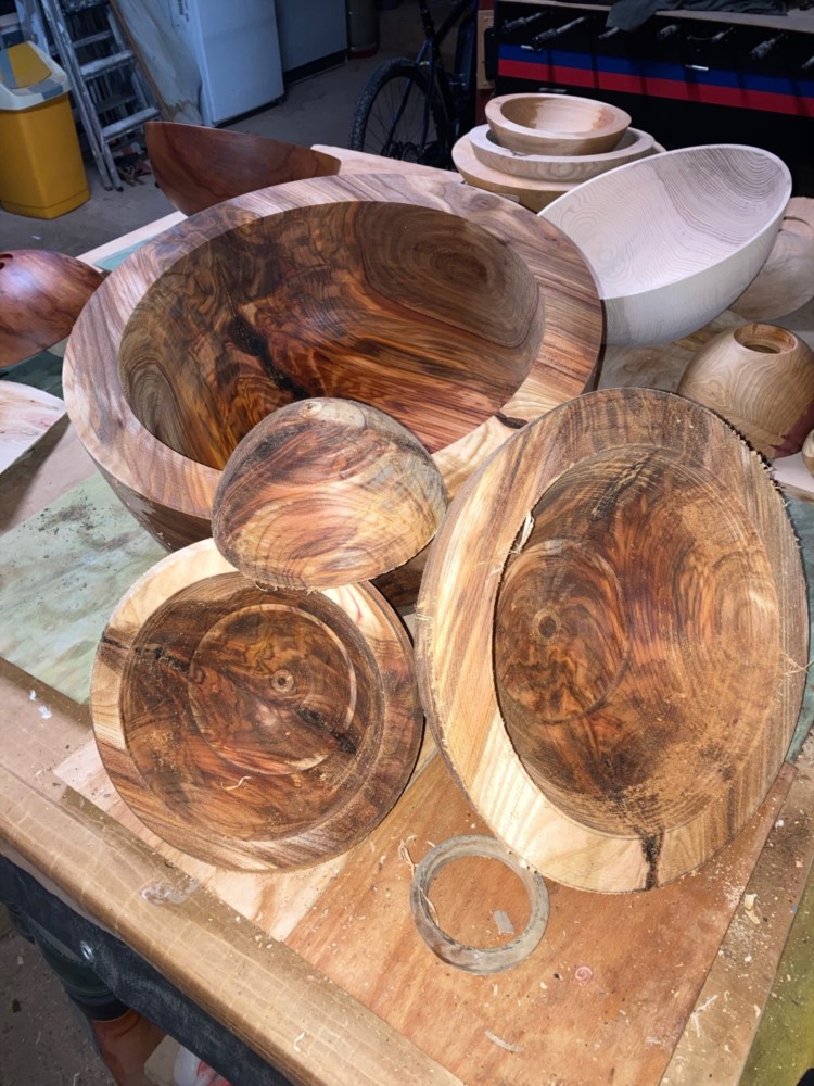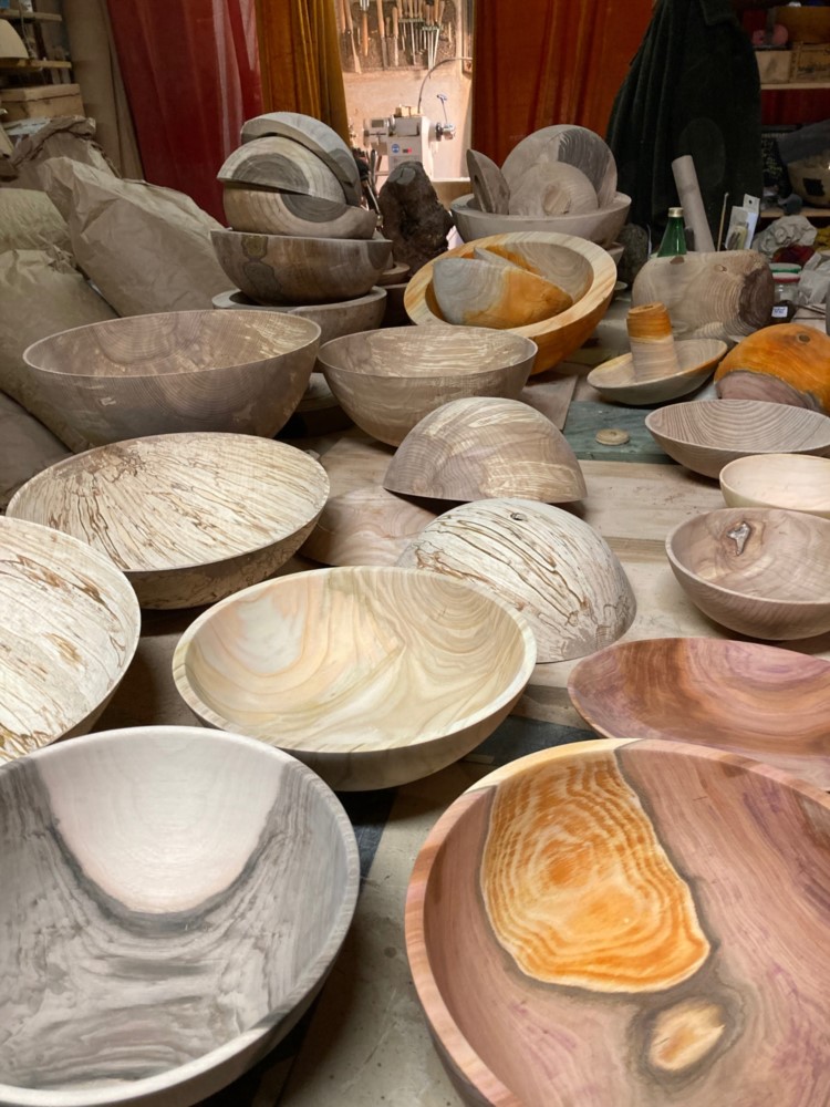 Seit 2023 habe ich die Möglichkeit solche Rohlinge im gepachteten „Schalenhäuschen“ nebenan zu lagern und zu trocknen.