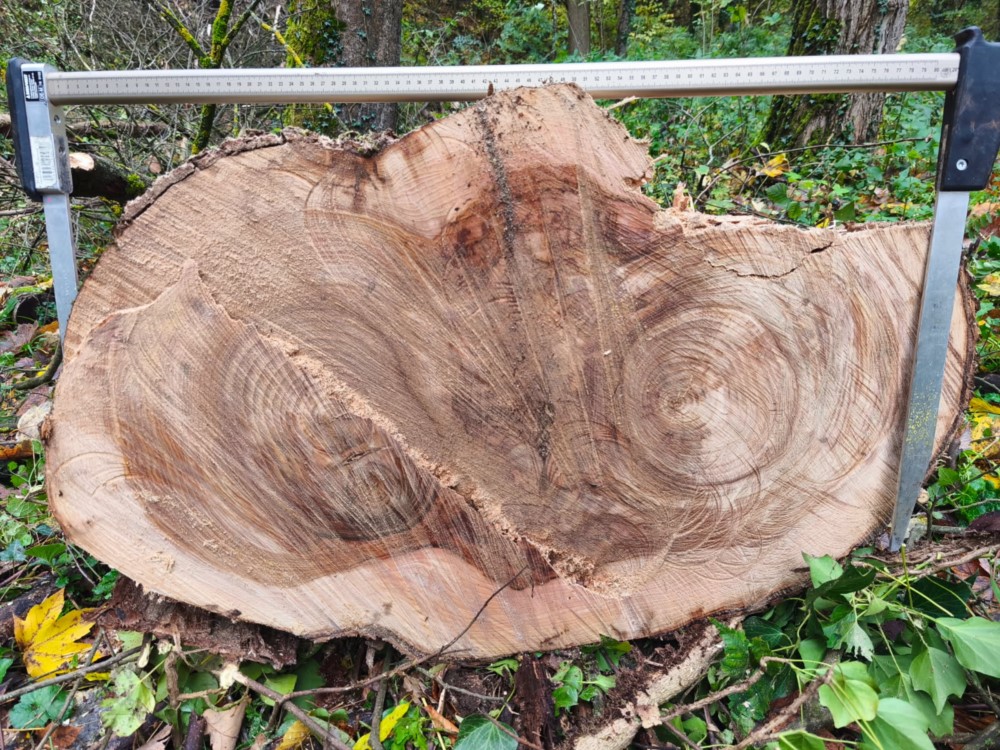 Welche Rissneigung liegt vor? Welche Eigenheiten - Zwiesel, Äste, Risse, Löcher, Hohlräume, Unförmigkeiten, Symmetrien/Asymmetrien, Spannungen, Morschheiten, Spannrückigkeiten, Wimmerwuchs-Effekte - werden zum Vorschein kommen, die Bearbeitung und Trocknung beeinflussen und das Aussehen bestimmen?